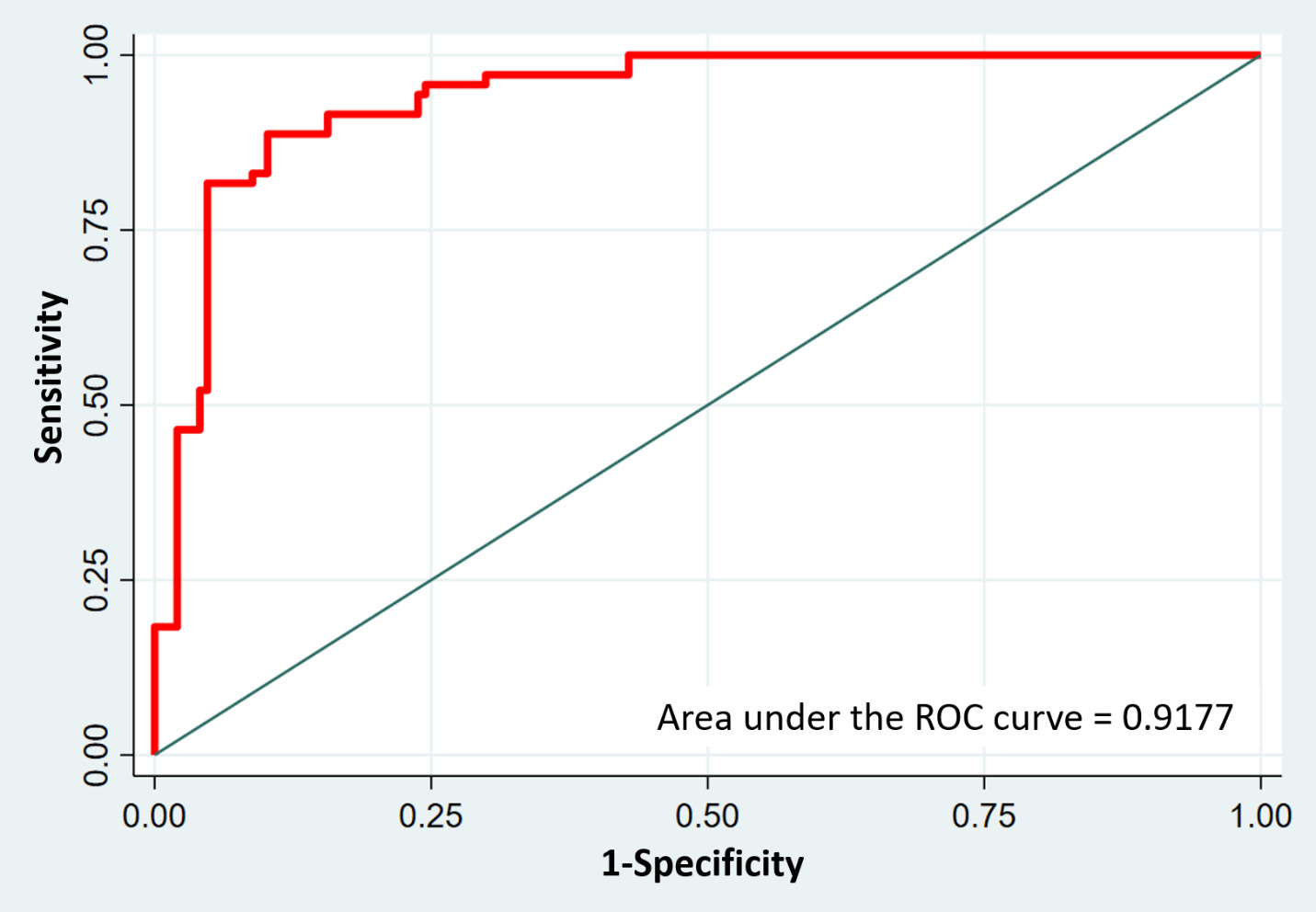 The logistic regression model showed excellent discriminatory performance for predicting SSIs in abdominal surgery, with an area under the receiver operating characteristic curve (area under the curve) of 0.917 (95% CI, 0.876–0.958; P < .001), indicating high predictive accuracy (Figure 3).